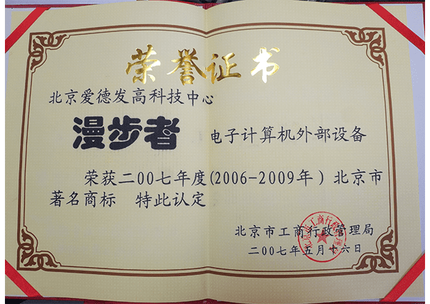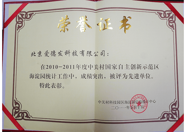 海淀区人民政府中关村海淀园百项表彰 拳头产品证书